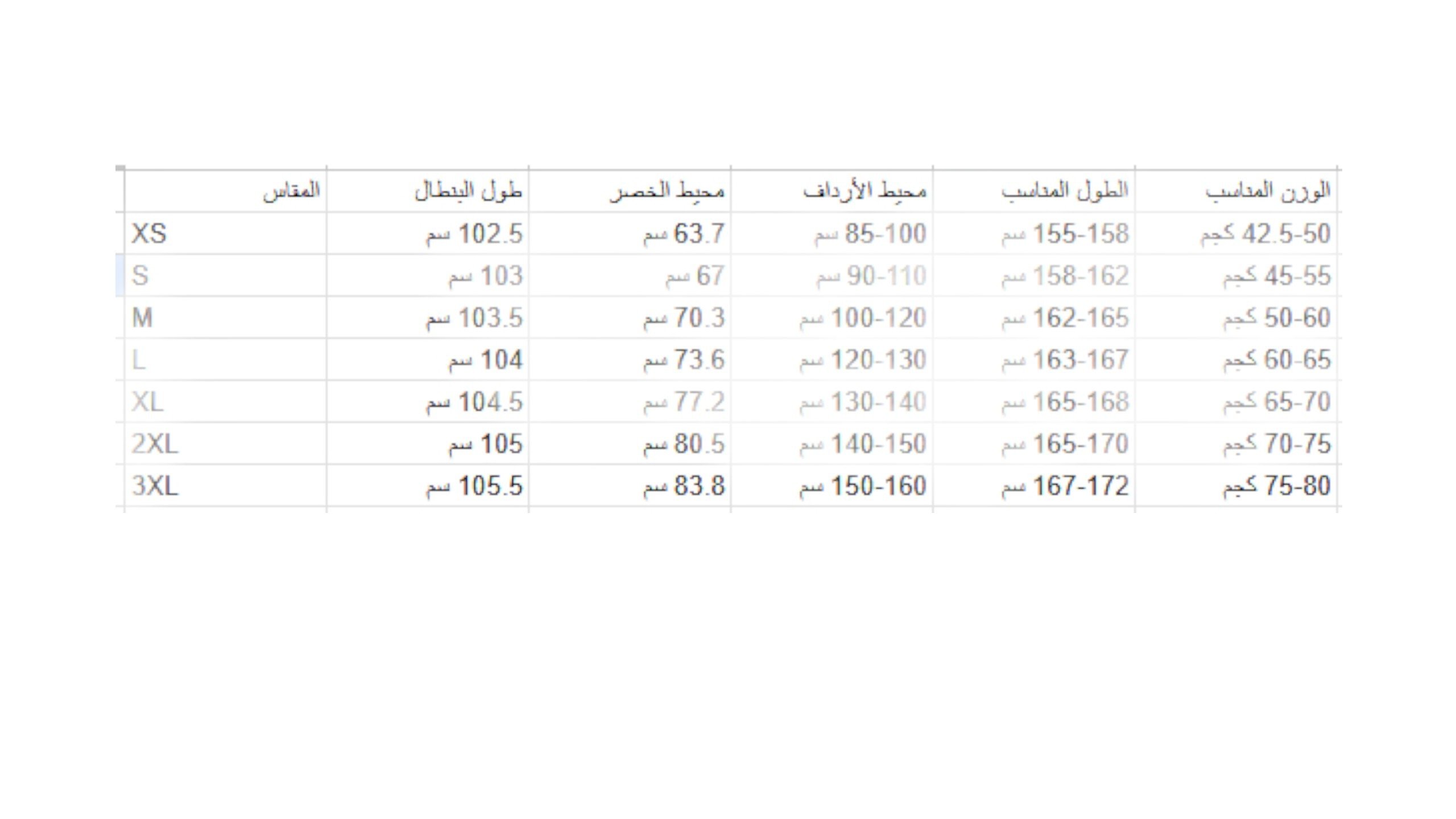 ملاحظة: يرجى الاطلاع على جدول المقاسات قبل الطلب لضمان الحصول على المقاس المناسب.